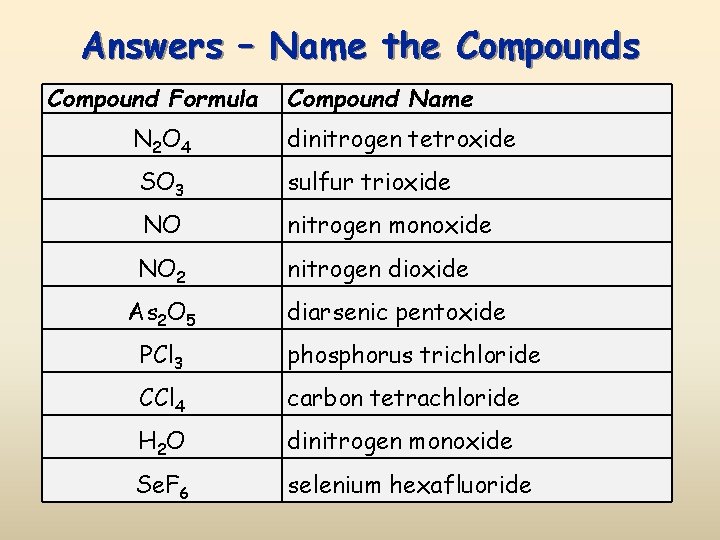 When naming the appropriate prefix is used only if there are more than one atom of that element in the formula. Join our Discord to connect with other students 247 any time night or day. A binary molecular compound is a compound that is form by 2 nonmetal elements.